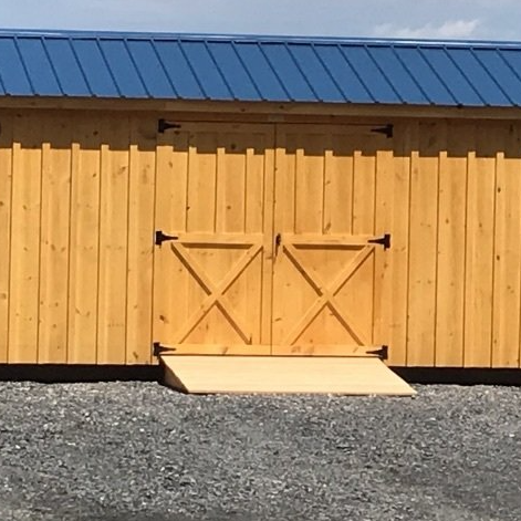 NOTE: All sheds come standard with 1 set of lockable wooden double doors & a ramp (unless it has a porch-see porch option for details).